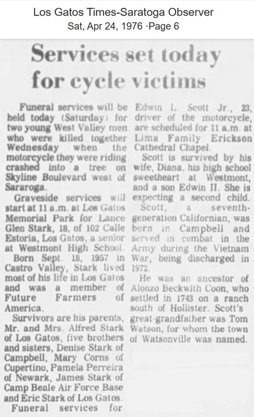 Lance Glen Stark 10/22/1957 - 4/21/1976 Age 18
